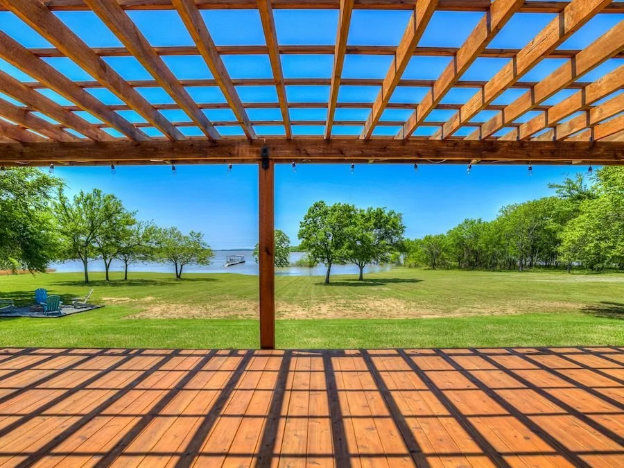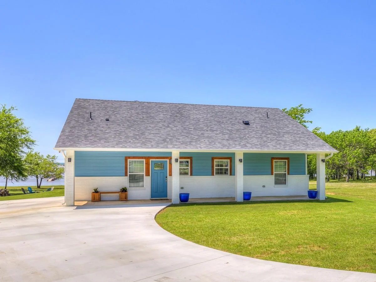 Ditch those devices for this stunning lakefront view at The Blue Oasis. Nestled in a tranquil cove on Lake Eufaula, this newly constructed 3-bed/2-bath home offers an idyllic retreat. With a private boat dock and a convenient neighborhood boat ramp, it's a paradise for water enthusiasts.